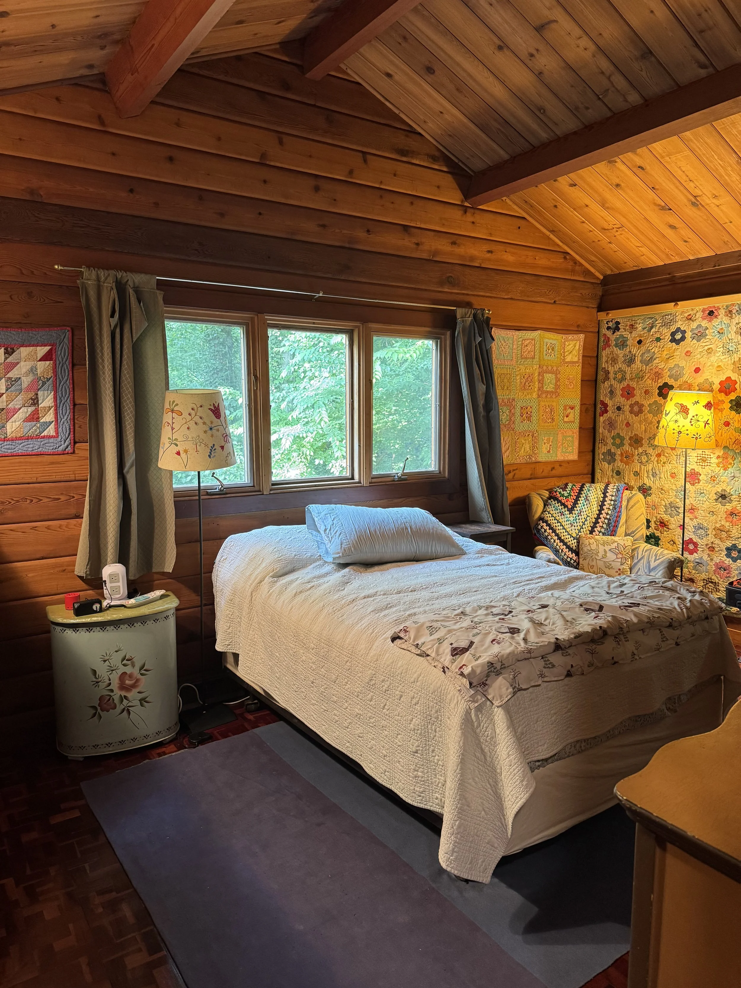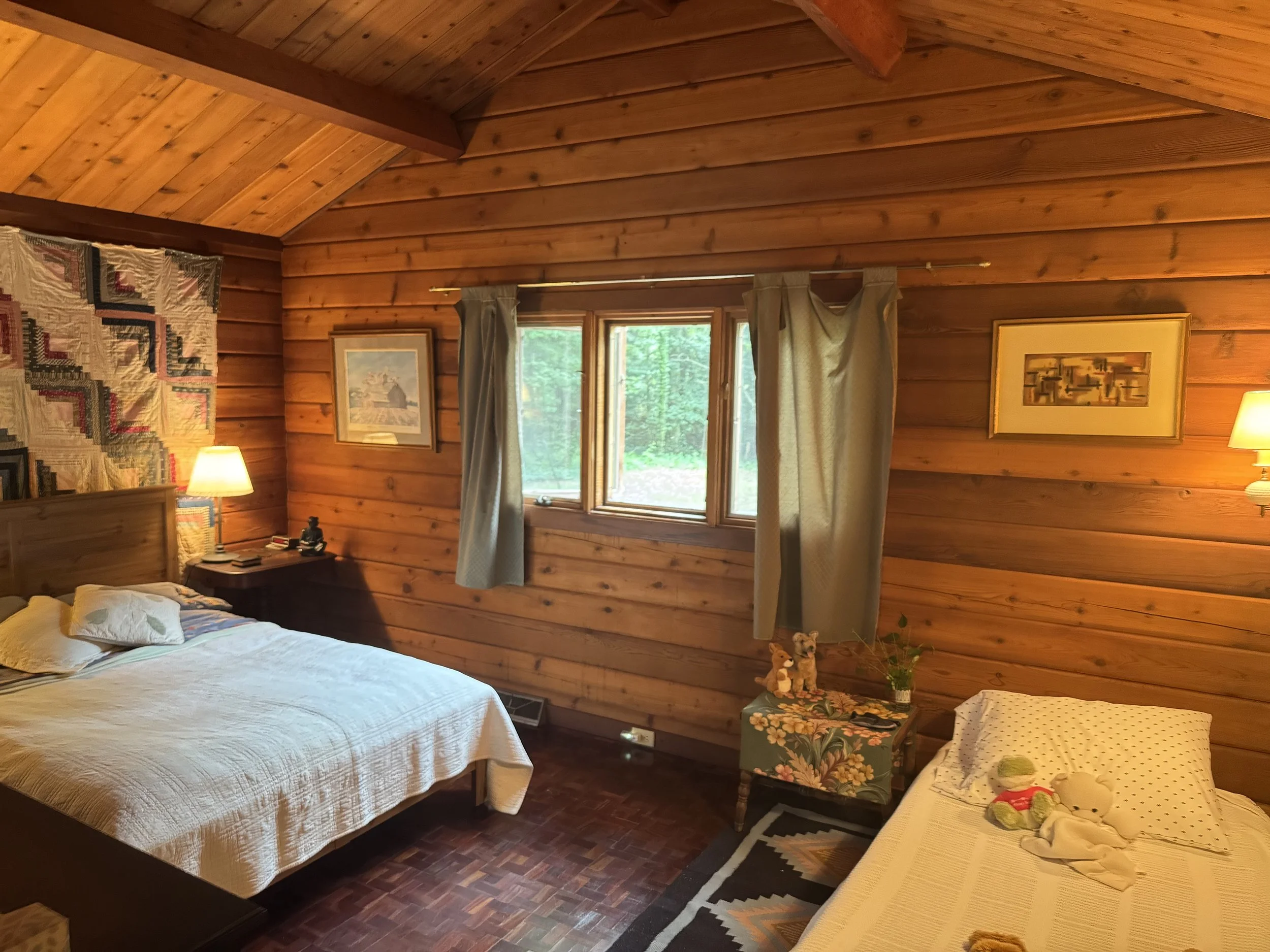 Amanda’s Great Uncle Bob hand-built the log cabin, which he lived in for many happy years, and it gives the Poppei family great joy to share this gift.